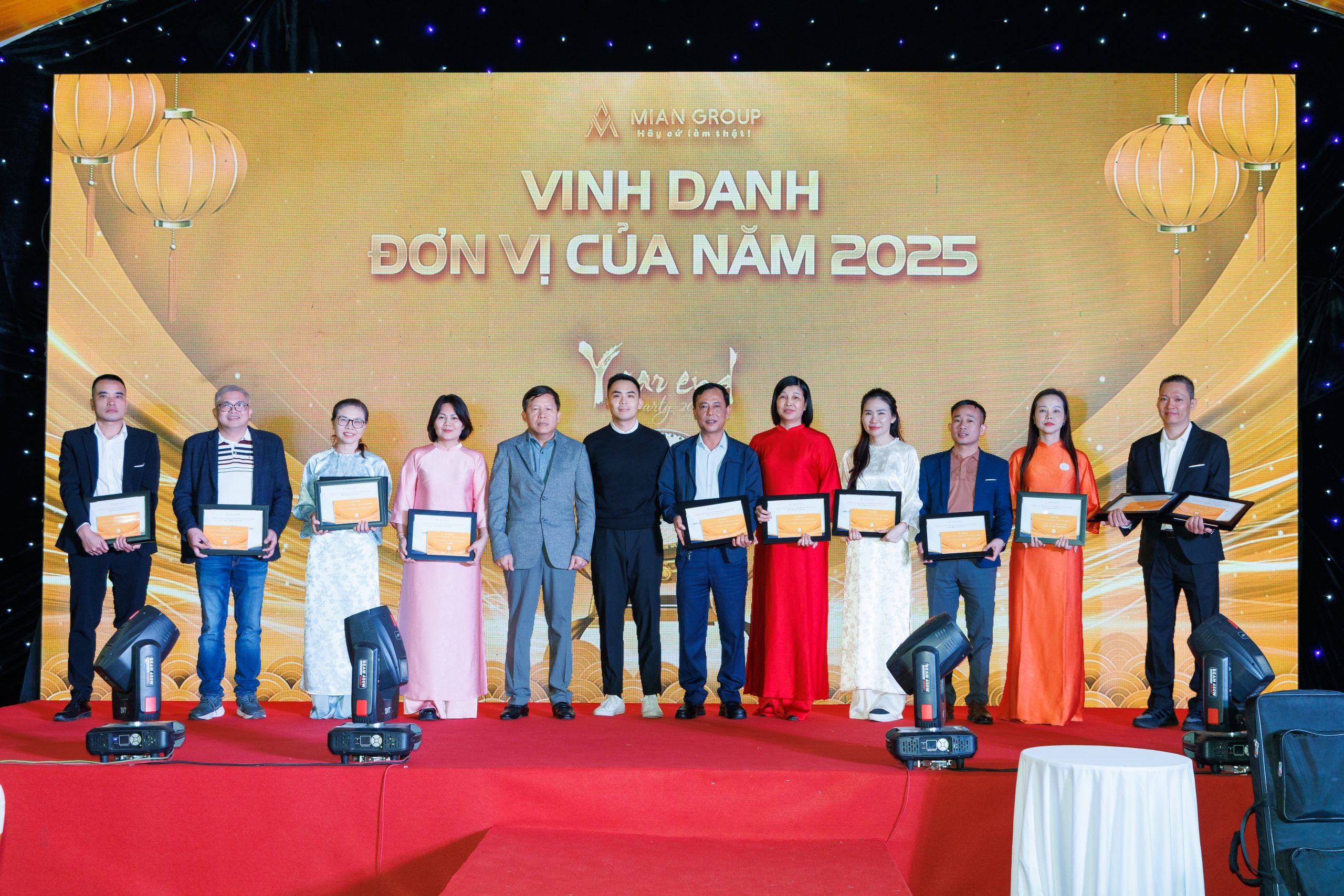 Ngày 31/01 vừa qua, MIAN Group đã tổ chức thành công chương trình Year End Party 2025 với sự tham dự của Ban Lãnh đạo Tập đoàn, Ban Giám đốc các đơn vị thành viên và đội ngũ cán bộ quản lý toàn hệ thống.